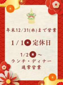 なお、新年は1月2日より通常営業
